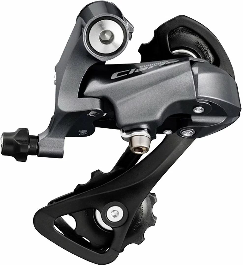 Shimano Claris RD-R2000 Schaltwerk mit kurzem Käfig. Das Schaltwerk kann mit einer Kassette bis maximal 32 Zähnen gefahren werden. Das Wide Link Design erhöht die Steifigkeit und verlängert die Haltbarkeit. Dies sorgt für besonders weiche und leichte Schaltvorgänge und steigert so die Fahrfreude.